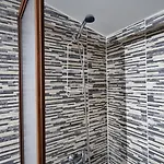 Das Hotel Blue House Cabana - Departamento - Habitacion verfügt über Zimmer mit einem Patio und einem Essbereich sowie einem Steinkamin für Ihren Komfort. Neben einer getrennten Toilette und einer Dusche gehören auch ein Haartrockner und Handtücher zur Ausstattung des Badezimmers.